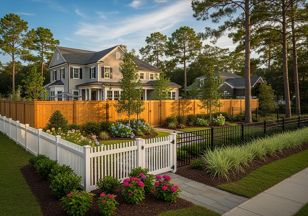 Match your home's style. Modern homes look great with clean aluminum lines. Traditional houses pair well with classic cedar or vinyl. Your fence should complement your property, not fight with it.
